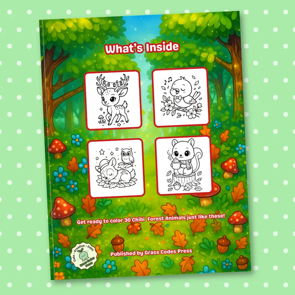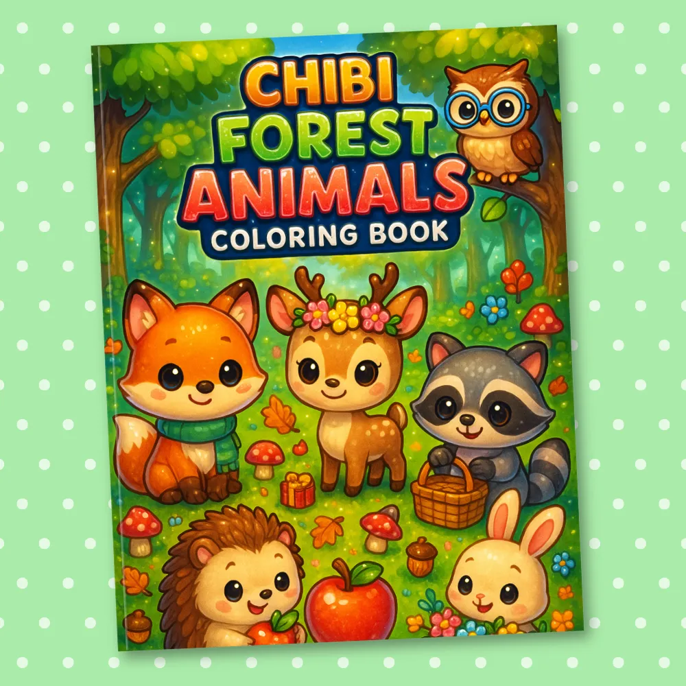We created this Chibi Forest Animals Coloring Book to bring the magic of the forest right into your hands! Inside, you’ll find 30 adorable chibi forest creatures ready to be colored in your own unique style. Each page features cute animals like foxes, deer, owls, raccoons, hedgehogs, bunnies, and many more, all surrounded by charming little details like flowers, mushrooms, leaves, and tiny treasures that make every illustration feel special.